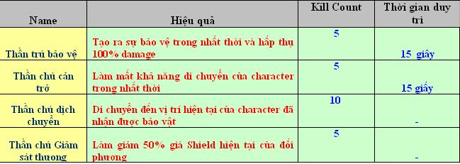 • Char tử vong sẽ được hồi sinh từ nơi bắt đầu chiến đấu và câu thần chú bào vệ có tác dụng trong 10giây
